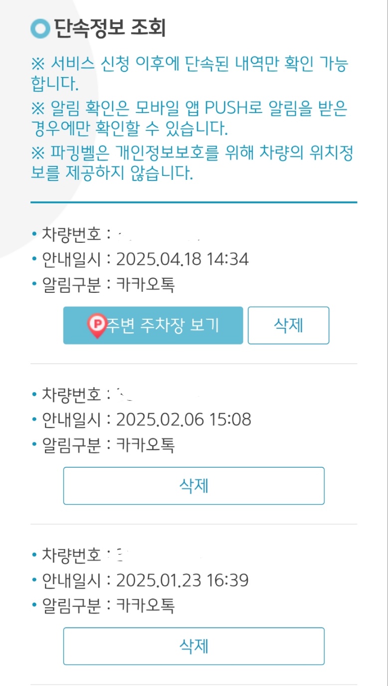 알림을 받고 즉시 차량을 이동하면 단속을 피할 수 있어요. - 개인정보 보호